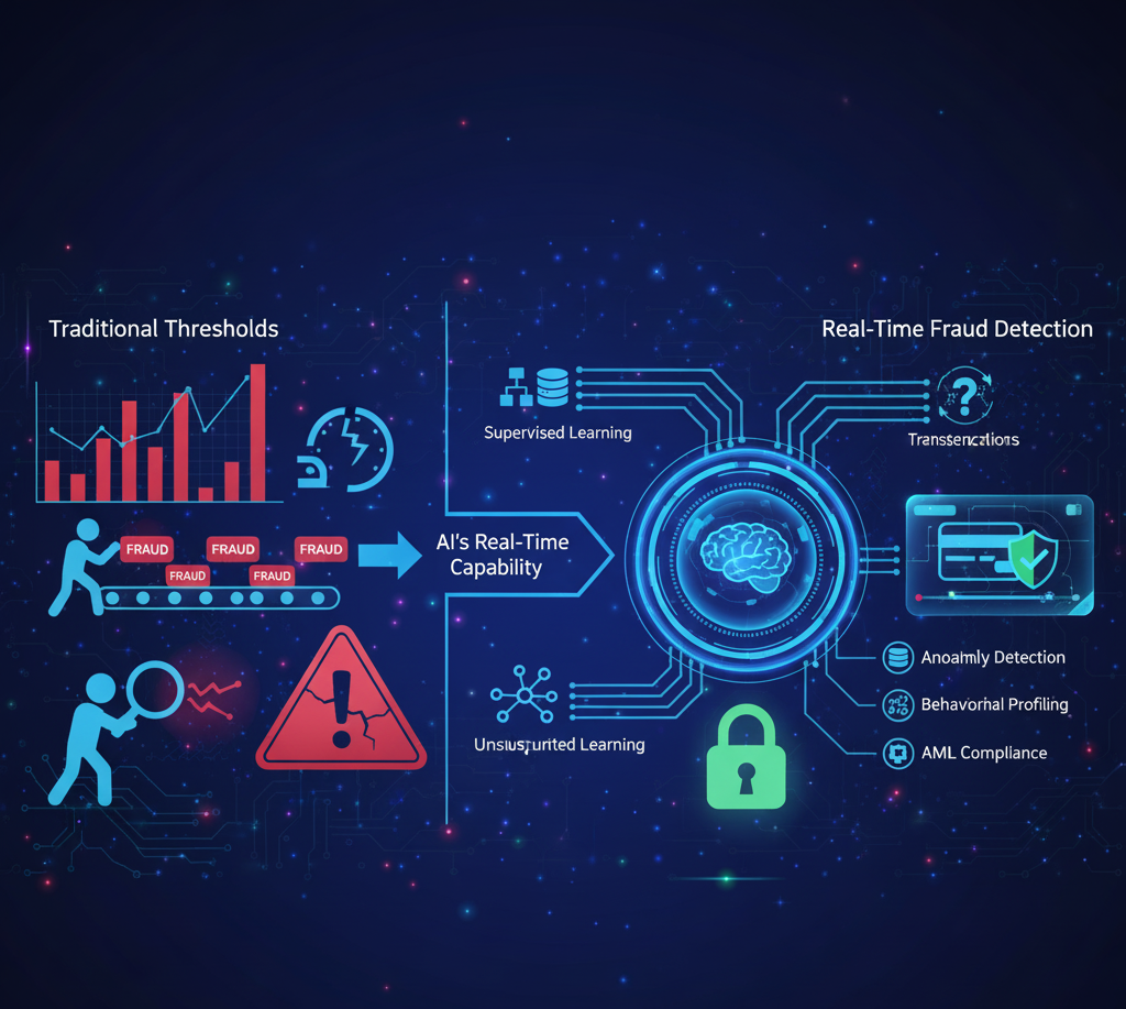AI’s ability to process vast amounts of data in real-time is a game-changer. Instead of relying on rigid, pre-defined rules, AI uses both supervised and unsupervised learning to detect anomalies. Supervised learning analyzes historical fraud data to identify patterns, while unsupervised learning recognizes deviations from normal behavior, catching novel schemes that humans or traditional systems might miss.