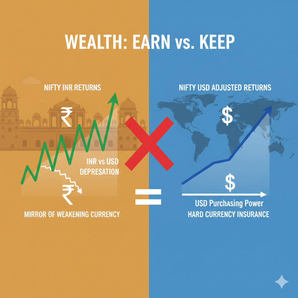 When we think about wealth, most investors instinctively focus on return percentages. Yet, any seasoned financial advisor will emphasize that wealth is not only about what you earn, but about what you keep. And what you โkeepโ is determined by risk, volatility, and the unseen erosion of currency value. For Indian investors, the biggest silent enemy of wealth has historically been the steady decline of the Indian Rupee against major global currencies like the US Dollar. ๐