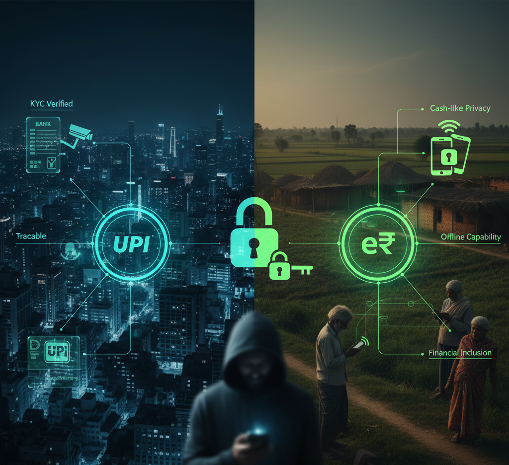 The genius of India’s payment strategy lies in functional specialization. UPI handles high-volume, everyday transactions across urban and semi-urban areas. The e₹, on the other hand, is tailored for strategic policy goals: